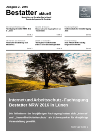 Ausgabe 2 - 2016 Bestatter aktuell Newsletter von Bestatter Deutschland Bundesfachgruppe für Bestatter Internet und Arbeitsschutz: Fachtagung Bestatter NRW 2016 in Lünen Gesetze & Steuern:…