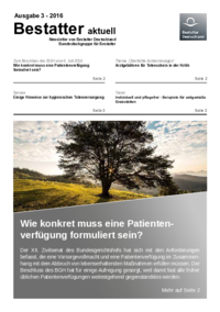 Ausgabe 3 - 2016 Bestatter aktuell Newsletter von Bestatter Deutschland Bundesfachgruppe für Bestatter Zum Beschluss des BGH vom 6. Juli 2016 Wie konkret muss eine Patientenverfügung formuliert…