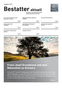Ausgabe II 2017 Bestatter aktuell Newsletter von Bestatter Deutschland Bundesfachgruppe für Bestatter Allgemeines Schonvermögen jetzt bei 5000 € Franz-Josef Grundmann und sein Bekenntnis zu…