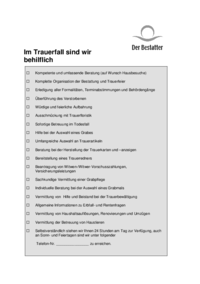 Im Trauerfall sind wir behilflich Kompetente und umfassende Beratung (auf Wunsch Hausbesuche) Komplette Organisation der Bestattung und Trauerfeier Erledigung aller Formalitäten,…