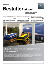 Ausgabe II 2017 Bestatter aktuell Newsletter von Bestatter Deutschland Bundesfachgruppe für Bestatter Allgemeines Schonvermögen jetzt bei 5000 € Franz-Josef Grundmann und sein Bekenntnis zu…
